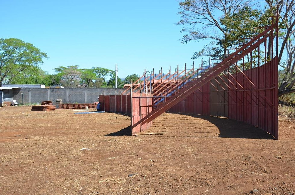 El redondel estuvo instalado recientemente en Sámara, Guanacaste y de ahí se trasladó en contenedores a Orotina. Una parte del mismo es techada y cuenta con burladeros, tal y como luce la plaza en Zapote.