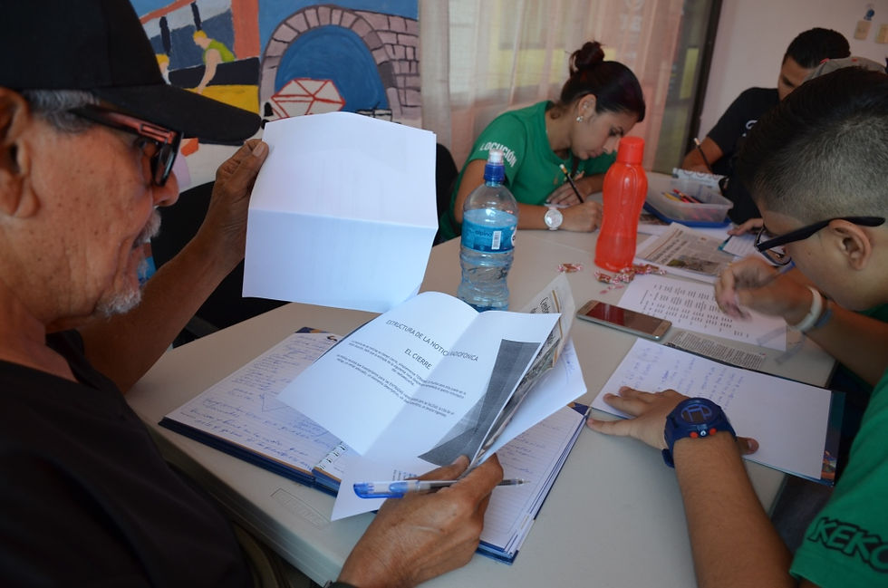 Con un taller sobre la noticia radiofónica (las partes que la componen) y una práctica de locución inició el sábado 1ero de abril la beca- taller (extensión) que dirige el profesor Daniel Vega, Director de OrotinaOnline.
