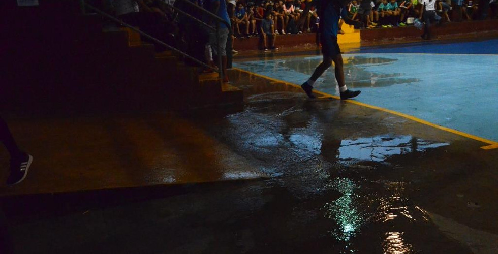 La lluvia que en gran cantidad cayó la tarde de este miércoles, obligó a suspender un juego de la final nacional de futsal, categoría B que se juega en el Gimnasio de la Escuela Primo Vargas en Orotina.