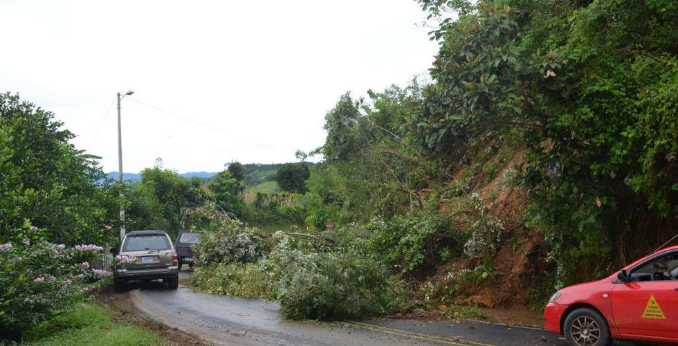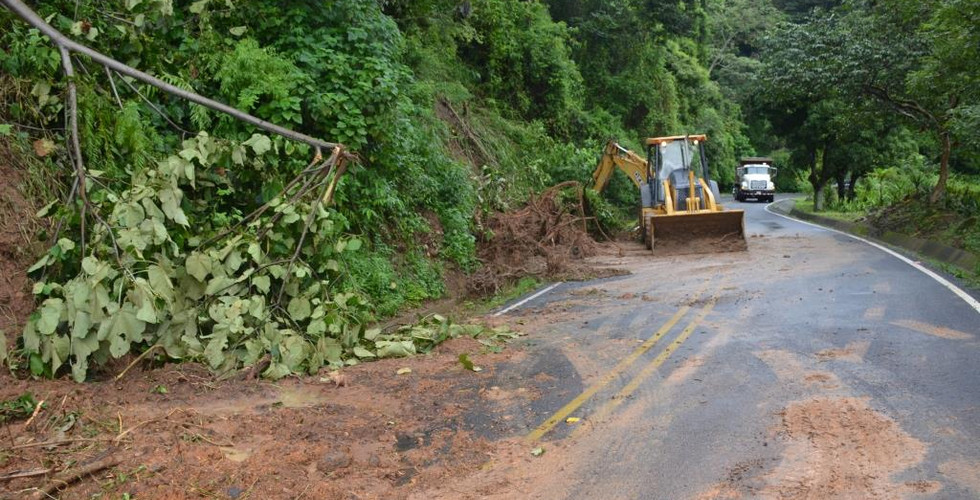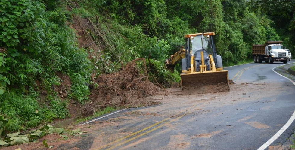 Entre la entrada al poblado de Estanquillos (sector de Atenas) y la Chicharronera en Desmonte (San Mateo), hay cuatro deslizamientos. Dos excavadoras y dos vagonetas tratan de habilitar la vía, pero el material caído sobre la carretera es grande.