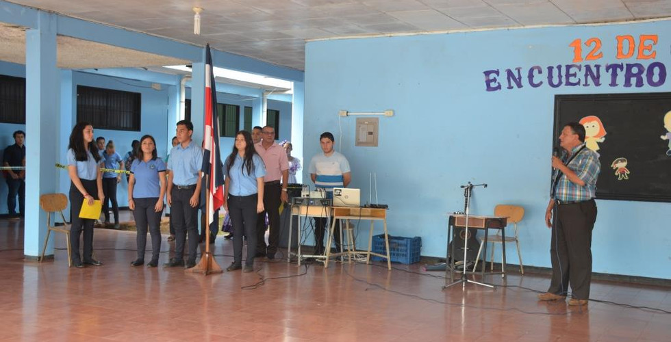 La interpretación vocal, acompañado por su guitarra; del profesor Maximiliano Brenes dejó un ambiente de reflexión en la celebración del Día del Encuentro de Culturas en el Colegio Técnico Profesional Ricardo Castro Beer , la mañana de este jueves.
