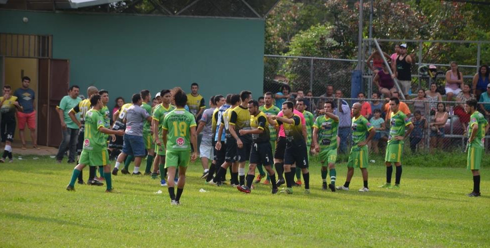El compromiso- jugado el domingo en cancha de San Mateo- fue arduamente disputado y tuvo de todo: buenos goles, penales; reclamos airados por jugadas que los árbitros sancionaban o dejaban de sancionar. Empujones, amagos de pelea y dos tarjetas rojas. El compromiso se suspendió 15 minutos, pero luego el silbatero ordenó reponer únicamente 10.